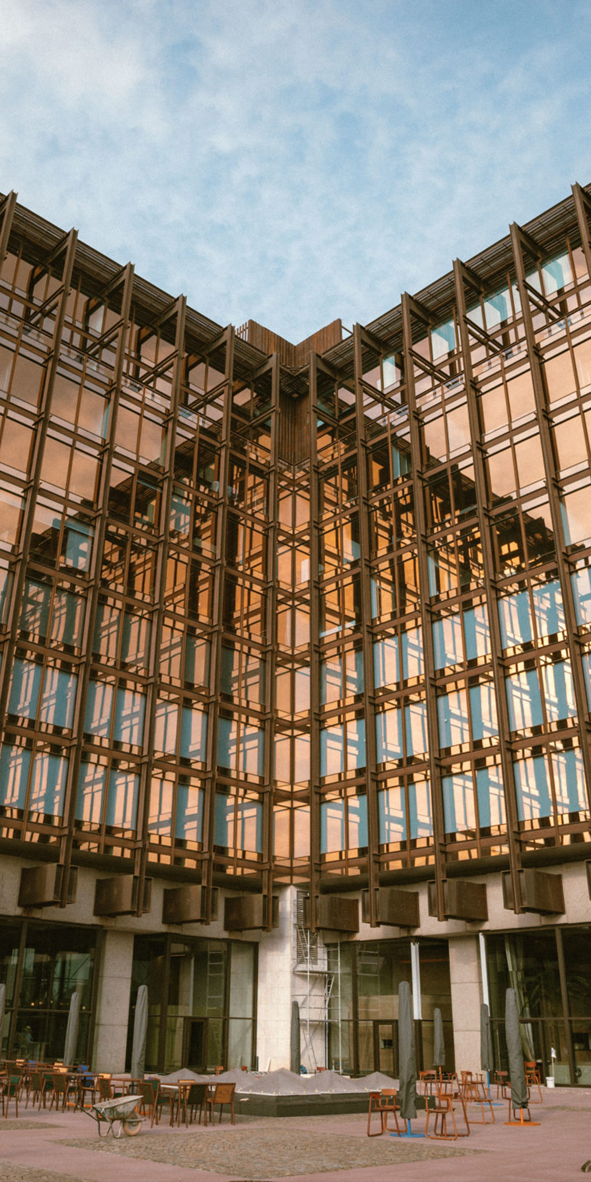 Het perfect kruisvormige gebouw in Cortenstaal met een compleet beglaasde sokkel wekt de indruk dat het op het water drijft. Het gebouw is ontworpen in nauwe relatie met het landschap. Het iconische kantoorgebouw werd gerenoveerd door Caruso St John Architects, Bovenbouw Architectuur en in samenwerking met DDS+. Een groot deel van het gebouw werd herdoopt...